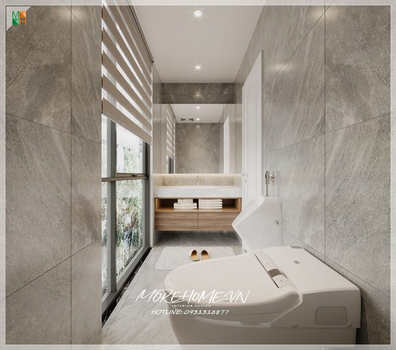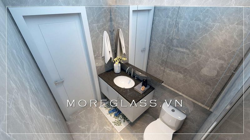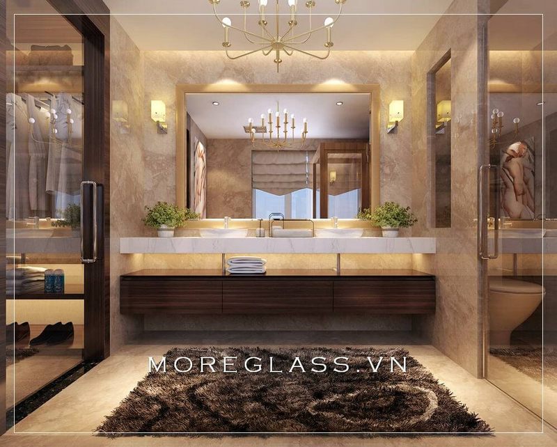 Mẫu kệ tủ lavabo đẹp sử dụng gỗ công nghiệp cao cấp kết hợp ốp mặt bàn đá tự nhiên cho phòng vệ sinh thêm sang trọng đẳng cấp