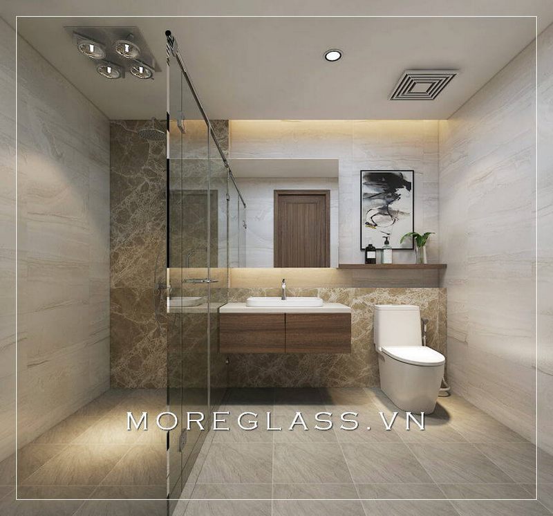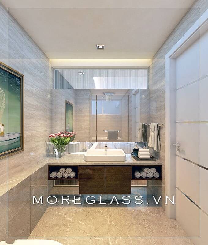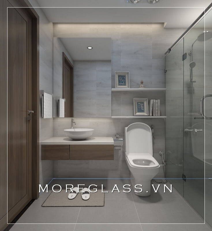 Kiểu tủ kệ gắn tường với chiều ngang nhỏ này rất phù hợp đối với không gian có thêm không gian để cất sữa tắm, dầu gội đầu và những vật dụng khác.