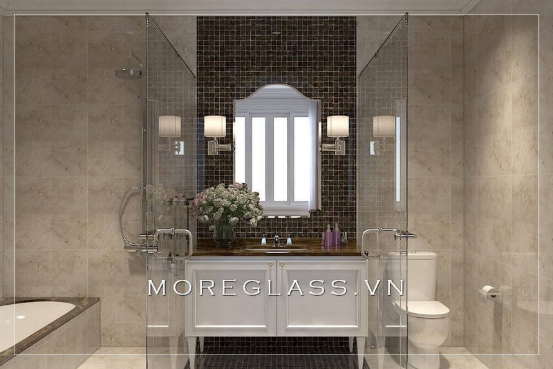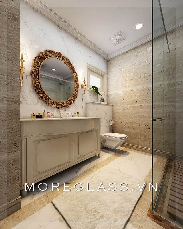 Mẫu kệ tủ lavabo màu trắng sang trọng phong cách tân cổ điển hoàng gia cho phòng tắm biệt thự cao cấp.