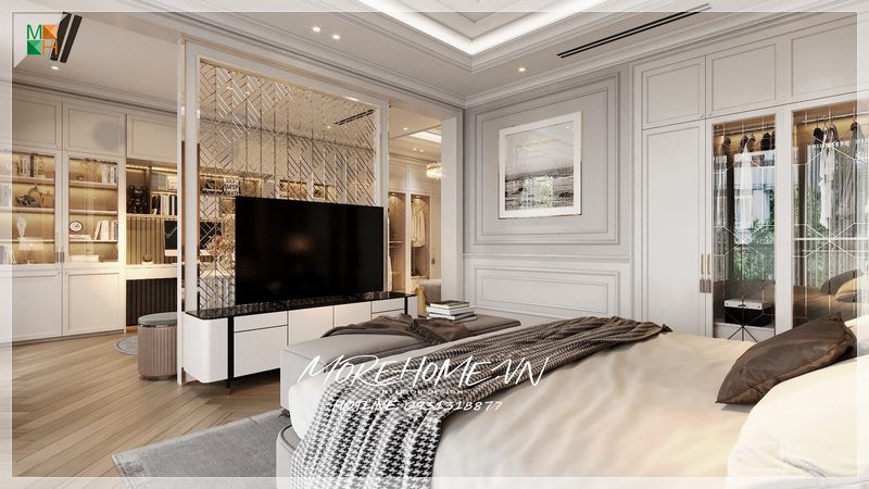 Gợi ý mẫu thiết kế phòng ngủ master sang trọng phong cách tân cổ điển cho biệt thự, nhà phố có diện tích rộng