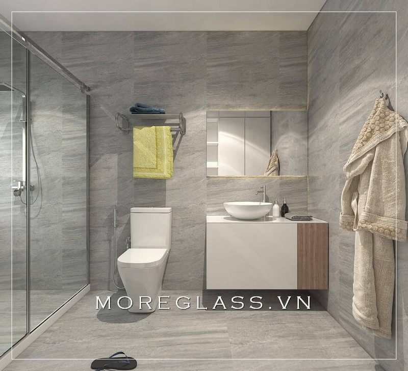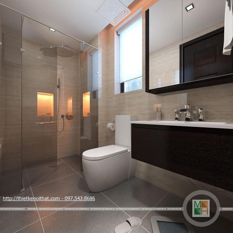 Mẫu tủ kệ lavabo gỗ công nghiệp ốp mặt đá hiện đại cho phòng tắm