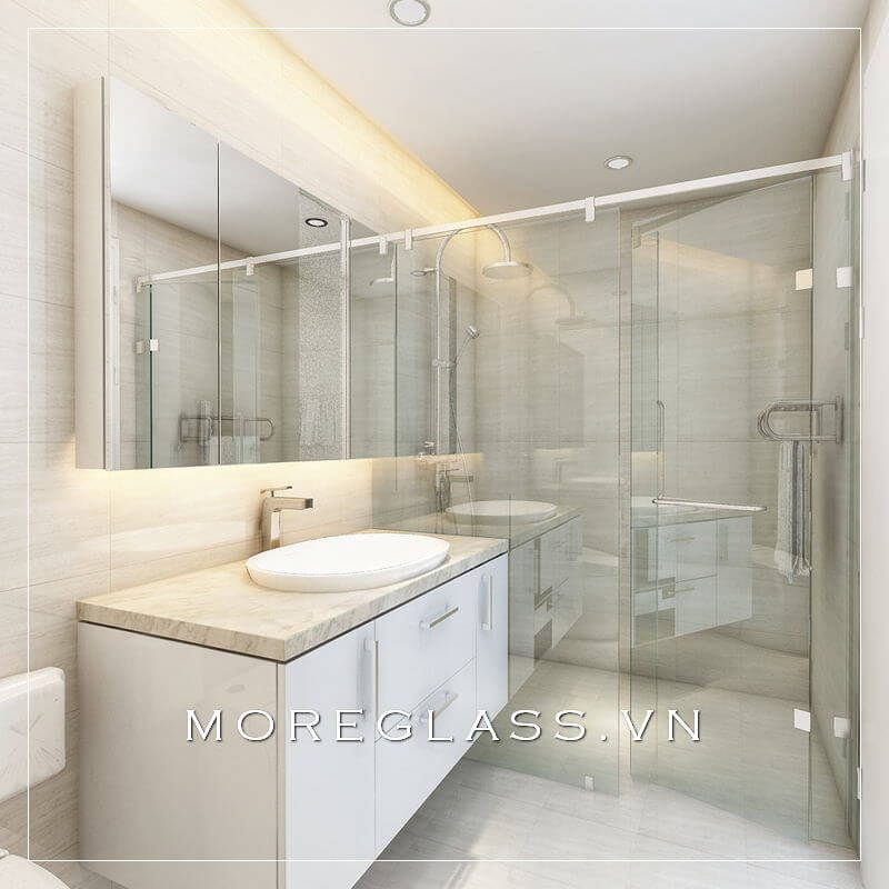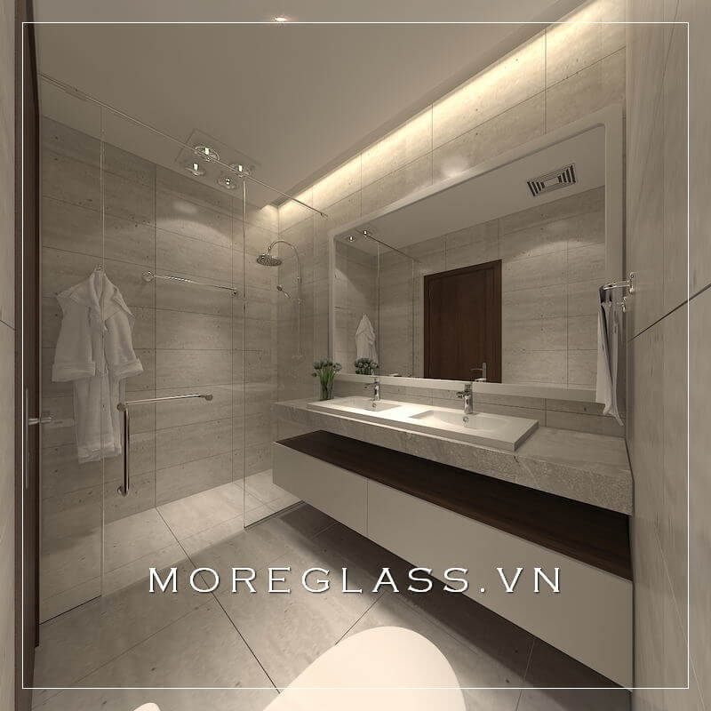Mẫu kệ tủ gỗ công nghiệp màu trắng tính tế cho phòng tắm khách sạn cao cấp