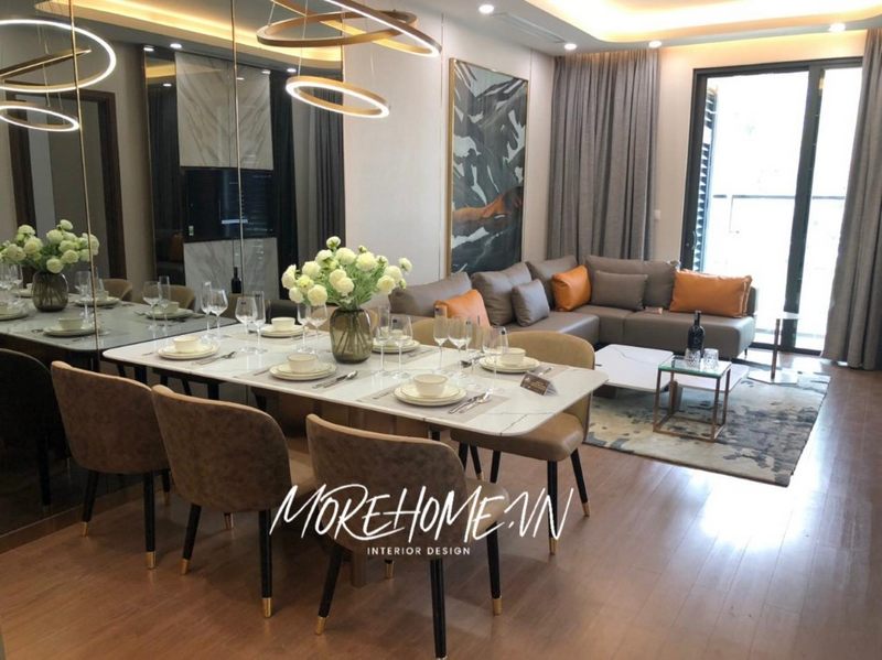 Đẹp, sang trọng và tiện nghi là những phản hồi tích cực đến từ phía người tiêu dùng với mẫu thiết kế phòng khách chung cư hiện đại ấn tượng của Morehome.
