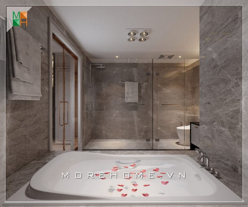 Mẫu thiết kế nhà tắm hiện đại và sang trọng được thiết kế rộng rãi và thoáng mát, phù hợp với các căn hộ, nhà phố, biệt thự,...